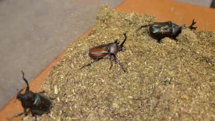 学校で飼育しているカブトムシが、次々と成虫になっています。校長室前で育てていたカブトムシもご覧のように立派な角をもった成虫に!各教室のカブトムシも成虫になっています。時期としては、ちょっと早いような気がするのですが、虫が大好きな子供たちは大喜びです。