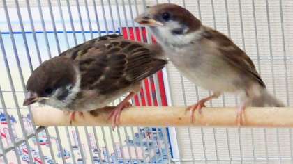 巣の撤去の際に保護した子スズメたちが、3羽とも順調に育っています。カゴの中でじっとしていることが少ないので、写真の被写体としては難しくなってしまいました。昨日6年生の巣箱作り講習会でお世話になった専門家の方にうかがったところ、あと1週間後くらいが、自然に返すチャンスだということでした。それまで、子スズメたちを鍛えたいと思っています。