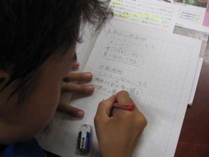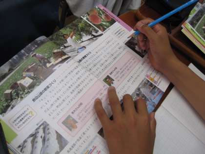 課題解決に向けて,教科書にアンダーラインを引いたり,考えたことをノートにメモしたりしています。お互いに意見交流をして学んだことをまとめました。