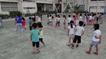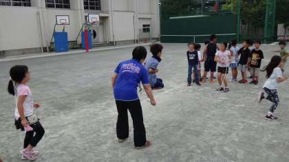 24日(火)朝、どんよりした曇り空でしたが、1・2年生が校庭で元気に体育朝会を行いました。今日は長なわとびです。2年生は次々と跳べますが、1年生はまだ慣れていない子も多く、これから練習して跳べるようになりましょう。