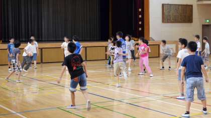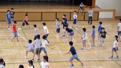 26日中休み、元気に遊ぶ子供たちのようすです。本校では、校庭が児童数の割には狭いので、学年が交代で体育館で遊べるようにしています。今日は、4年生が使える日です。ドッジボールや、長縄とびに夢中になっている元気な子供たちです。