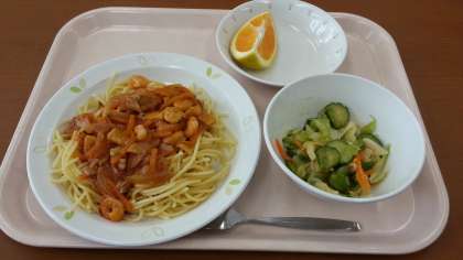 スパゲッティ地中海ソース 牛乳 イタリアンサラダ バレンシアオレンジ
