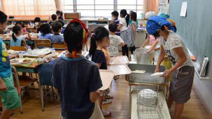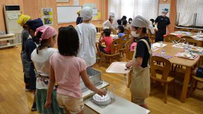8日(火)は、なかよし班給食を実施しました。1年生から6年生までをグループにしてわけている「なかよし班」。学年を超えて年間を通して様々な活動をしています。給食の準備も、学年が助け合いながらしました。お兄さんお姉さんにわけてもらい、うれしそうな子どもたちです。