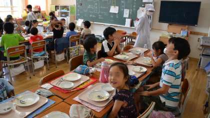 いつもとはちがう子どもたち同士で食べる給食。恥ずかしがってなかなか話が弾まない子、兄弟姉妹のように楽しそうに会話している子など様々でしたが、いつもとは違う雰囲気で食べたせいか、どのクグループでも、いつもより残滓が少なかったようです。