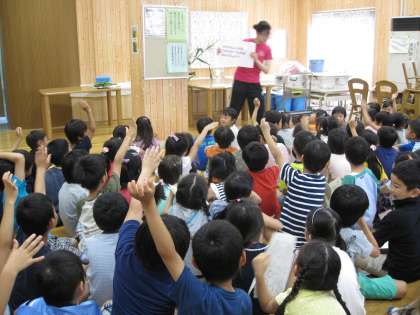 本校の栄養士から「とうもろこし」についてクイズを通して,お話がありました。