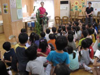 今日の朝早く,八王子で採れたとうもろこしは1年生の身長より大きかったです。