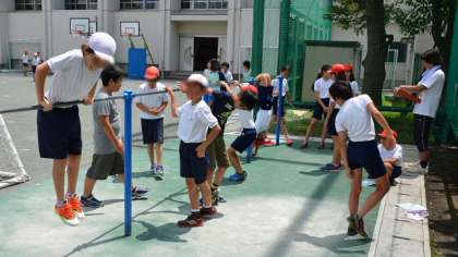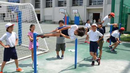体育の中でも、鉄棒は個人の差が大きい種目です。それぞれが自分の目標をしっかりもって、ステップアップしてほしいですね。鉄棒は、やる気をだせば個人で練習しやすい種目ですから、苦手な子は家族の方が機会を見て見守っていただければ幸いです。
