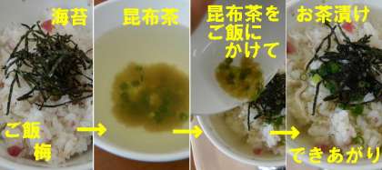 梅茶漬けは、教室でご飯に昆布茶をかけました。