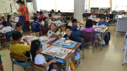 教室で給食を食べながら聞いている子どもたちからも、「上手だねえ」の声。昼の放送のアカペラ大会、もう1回行うそうです。次はどんな歌自慢の子が出てくるのでしょうか。