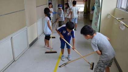 1学期間お世話になった教室の大掃除をするクラスもありました。一斉にする大掃除の時間はとっていないのですが、各クラス時間を設定して、片付けや掃除をしていました。すっかりきれいになった教室や廊下です。