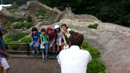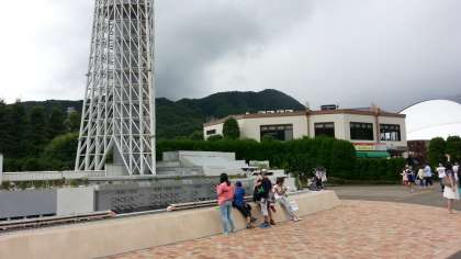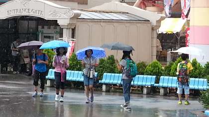 なんと、途中で雨が降りだしました。みんな傘をさして見学です。