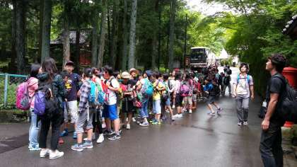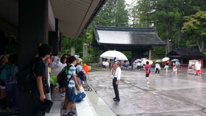 昼食を済ませて、13時40分、日光東照宮の見学に出かけました。雨模様の天気です。輪王寺でガイドさんと待ち合わせして、日光東照宮見学のスタートです。