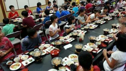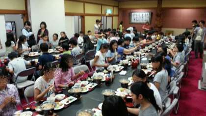 5時から夕食です。みんなで食べると楽しいですね。おいしくいただきました。