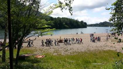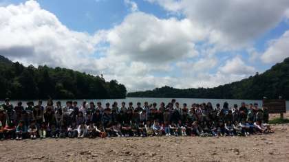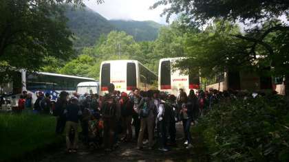バスは奥湯本に到着。湯ノ湖で学年写真を撮りました。この写真は卒業アルバムに載せるつもりです。この後は湯ノ湖から戦場ヶ原を通って竜頭の滝に向かうコースです。天気はいつまでもつでしょうか?・・・心配です。