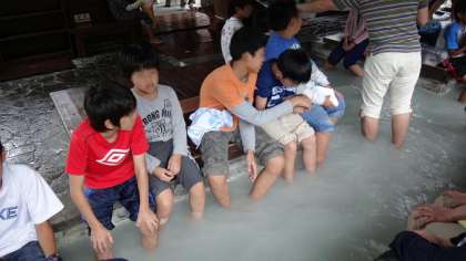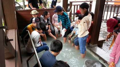 源泉を見学した後は、近くにある足湯に行き、疲れた足を温泉でいやしました。