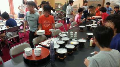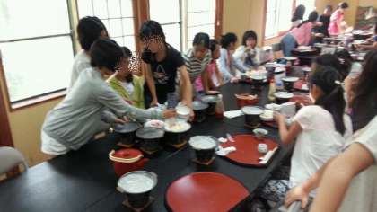 食事の片付けもグループごとに頑張りました。残さずきれいに食べたグループもあります。えらい!