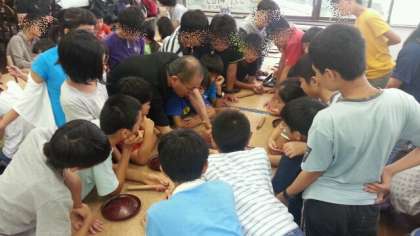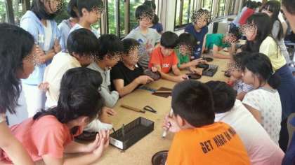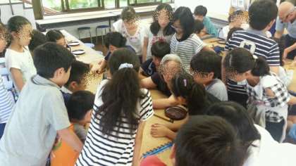 日光彫りの見本を講師の先生に見せてもらいました。さすがの腕前です。みんな感心して見ていました。
