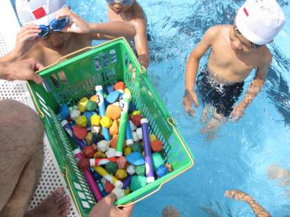 泳ぎにつながる,壁をけるロケット発射やふし浮きをしました。