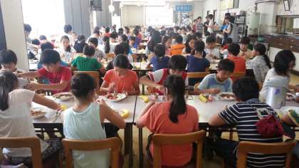 11時15分、東武観光センターで少し早い昼食をとりました。子供たちの大好きなカレーです。よく食べていました。日光で食べる最後の食事です。