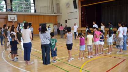 24日(木)午後、「まちの安全守り隊 チビニコレンジャー」が開催されました。PTA校外委員会と二子玉川地区交通環境浄化推進協議会が共催して行っている、交通安全への取り組みです。校外委員会の保護者の皆さん、交通環境浄化推進協議会の地域の皆さん、そして二つの大学の先生と学生さんが企画進行を行い、子どもたちの活動のサポートをしてくださいました。最初は、体育館で関係団体の皆さんの紹介やご挨拶をしていただき、その後、子どもたちの親交を深めるためグループでゲームをしました。
