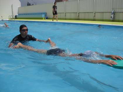 今日の練習で,初めて平泳ぎで25メートル泳ぐことができた子がいました。