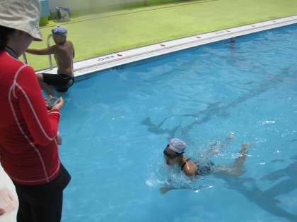 検定に向けて,50m平泳ぎのタイムに挑戦する子もいました。
