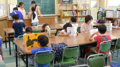 20日(水)、学校図書館開放の最終日となりました。今年度からPTAのご協力で、学校図書館を夏休み中に計6日間、開くことができました。おかげさまで、6日間合計140人の利用があったということです。プールの行き帰りに立ち寄って本を読んだり、夏休み前に借りて読み終わった本を返却し、別な本を借りていったりと、有効に活用してもらえました。また、親子で読書という姿も見られました。これも、ボランティアでご協力いただいた保護者の皆さんのおかげです。学校としては、本好き、読書好きな子を育て、読書習慣を身につけさせたいと思っています。今後ともご協力ください。