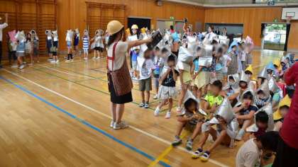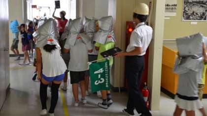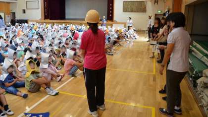 避難訓練の時は、「お・か・し・も」という約束があります。「押さない」「かけない(走らない)」「しゃべらない」「もどらない」です。みんなしっかり約束を守って、体育館に集合します。早く避難した学級も、次々と避難してくるのを無駄話一つせずに待つことができました。体育館に集合した子どもたちに、関東大震災の被害の様子を話して聞かせましたが、みんな真剣に聞いていました。油断することなく、災害に備える姿勢が大事です。各ご家庭でも、改めて災害の備えについて話題にしてみてください。