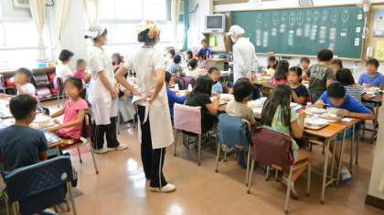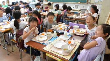 2学期が始まって2日目の2日(火)、給食も始まりました。長い夏休みを挟んでしばらく給食を食べていなかった子どもたち。久しぶりの給食です。昨日から来ている栄養士の教育実習生が、子どもたちが食べている様子を見て回りました。味などについて聞くために声をかけられた子どもたちは、ちょっと恥ずかしそうに応えているのがかわいいですね。