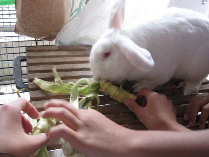 ウサギは,トウモロコシの皮が大好きでした。