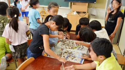 3年生理科、季節の自然の学習で、継続的に観察してきたヒマワリに種ができて枯れたので、切り取ってきてできた種を採集しました。さあ何個あるかな?一生懸命種をとって数えました。