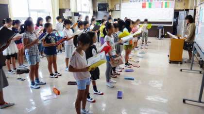 9日(火)朝、始業前の7時45分から,合唱団の2学期朝練習がスタートしました。朝のすがすがしい空気に、子どもたちの美しい声が響きました。