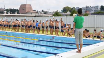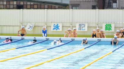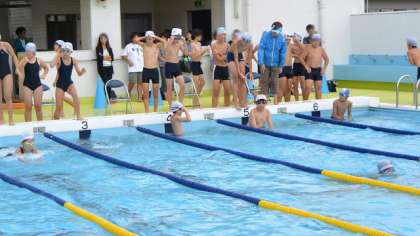 9日3、4校時、6年生の水泳記録会が行われました。最初に安全確認、準備体操をしてウォーミングアップをして、さあ本番です。自由形と平泳ぎ、それぞれ100mと50m、25mにエントリーし、自分の記録の更新に挑戦です。
