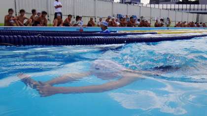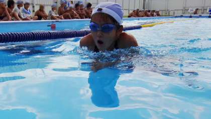 一生懸命泳ぐ仲間に、みんなからも、参観に訪れた保護者の皆さんからも声援や拍手が送られます。