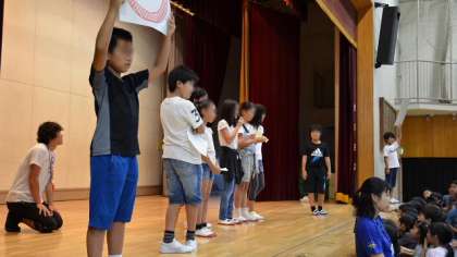 11日(木)朝、児童集会を体育館で行いました。今日は◯✕クイズです。集会委員会の児童が考えたクイズを出し、全校児童が◯と✕のエリアに分かれる・・・例のあのクイズです。子どもたちは大喜びです。