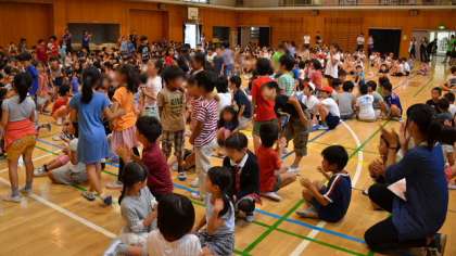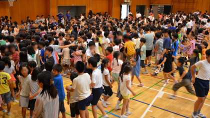 だいたいの正解は、人数の多い方でしたが、一度だけ人数の少ない方が正解で、少数派でちょっと不安げな表情だった子どもたちが大喜び。最後に全問正解の子どもたちに拍手を送って終了しました。終わった後、ステージ上で今日担当した集会委員会の子が集まって、ていねいにミニ反省会をして、次の集会に備えていました。