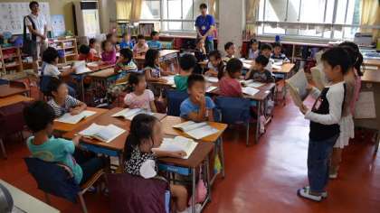 1年生は宮沢賢治の有名な「雨ニモマケズ」を学習しました。声を揃えて何度も読んでいるうちに、だんだん覚えてきて、見なくても読めるようになっていました。あえてあまり詩の意味を扱わず、言葉の雰囲気を味わいました。暗唱できるようになっていると、将来少しずつこの詩の意味がわかってくることでしょう。