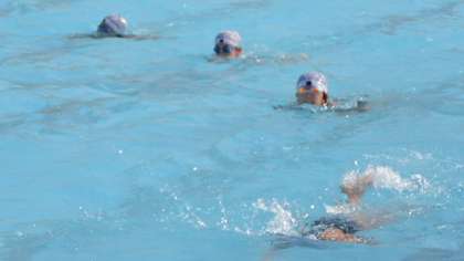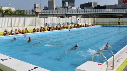 12日(金)、5・6校時に、4年生がプール納めをしました。ここのところ天候不順で、思うように水泳指導ができなかったのですが、今日は若干気温が低かったものの、降り注ぐ太陽の光の下、やっと1・2・4年生がプール納めにこぎつけました。今年度の成果を確かめる検定に取り組む4年生の子どもたちです。みんなの声援を受けながらがんばりました。
