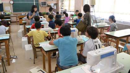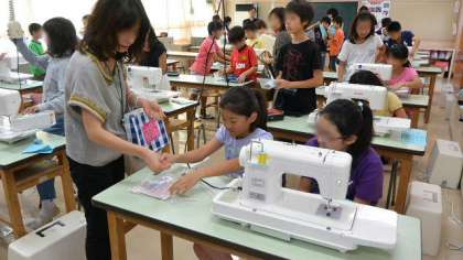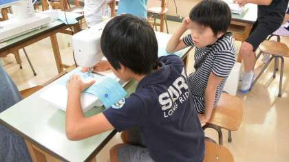 5年生の家庭科で、ミシンを使う学習をしています。今日はお手伝いに保護者の方も加わって指導してくださり、短時間で子どもたちがミシンを扱えるようになりました。ご協力ありがとうございます。