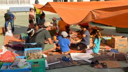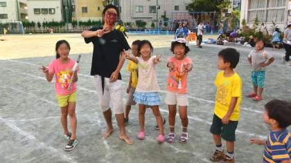 こちらはものづくりのコーナーです。スライムや手作りアクセサリーを作って楽しみました。顔にスライムを塗った怪人(プレーリーダー)も出現!