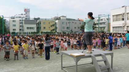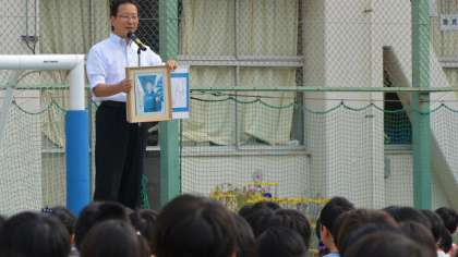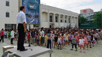 16日(火)、久しぶりに校庭で朝会をしました。3連休のあとで、子どもたちの様子はどうかなと思っていましたが、ほぼ時間通りに校庭に集合できて、整列も1回できちんとできました。さすが二子の子です。校長講話では、「夢と希望は大きいほどよい」という話をしました。サッカーの本田選手の卒業文集と、本校出身の宇宙飛行士、星出さんの小学校4年生の時の作文を紹介して(2人とも書いてあるとおりの夢を実現!)、夢や希望はかなうとは限らないけれども、目先のことだけでなくもっと将来のことを考えて、「実現に向かって頑張ってごらんなさい」とエールをおくりました。