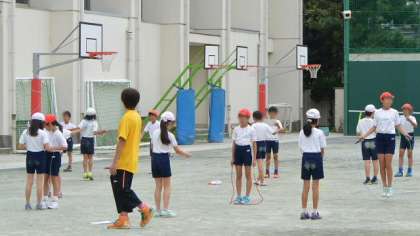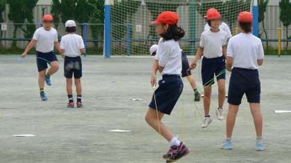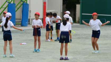 本校の今年度の重点取り組みとして、体力向上があります。児童数の割に狭い校庭で、有効に体力作りに励むことができるように、2学期から、なわとびの技や連続回数の段階を表にした、「なわとび検定カード」を配って、体育や遊び時間などに取り組みます。家庭でもちょっとした時間でできますから、声をかけて見てやってください。