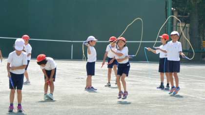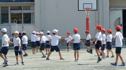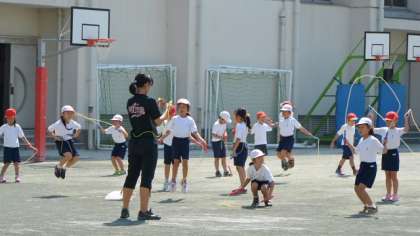 22日、校庭で2年生が体育の授業をしていました。朝会の話を受けて、さっそくなわ跳びに取り組んでいました。なわ跳びの技を担任が一つ一つ説明して、これから自分で取り組めるようにします。まだ、なかなかうまく跳べない子もいます。それぞれで練習して、どんどんうまくなるように努力しましょう。