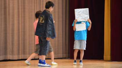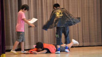 6年生の1グループは、白雪姫をモチーフにした寸劇を披露しました。お笑いの勘所をおさえた演技に、会場から笑いをとっていました。集会委員会の楽しい企画、次が楽しみですね。