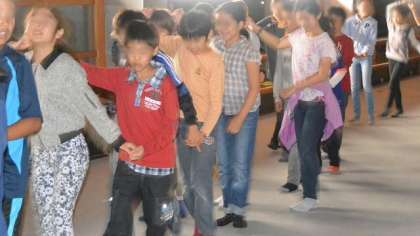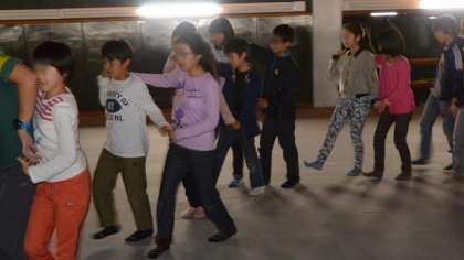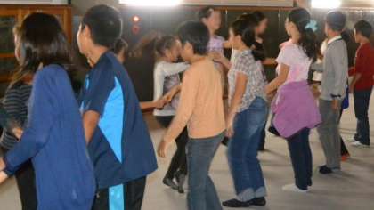こちらも定番のフォークダンス、「オクラホマミキサー」です。ちょっと恥ずかしそうなようすが、かわいいですね。