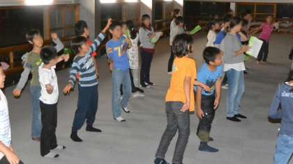 最後のダンスは「カンナムスタイル」で、たてノリで締めくくりです。楽しかった室内キャンプファイヤーもあっという間に最後に・・・「世界に一つだけの花」をみんなで歌いました。