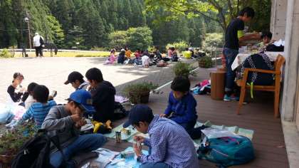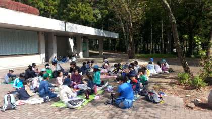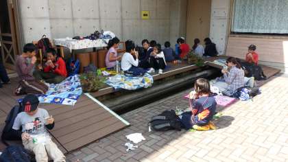 広場で昼食です。
