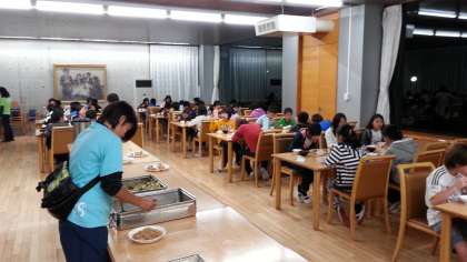 お腹がすいていたこが子が多かったようで、たくさんおかわりする子もいました。片付けも、昨日より上手になりましたね。