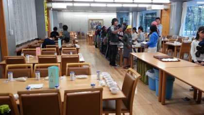 食事係が今朝も頑張って、予定通り朝食の準備ができました。集合も5分前行動がよく守られています。