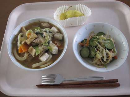 きつねうどん 牛乳 白菜サラダ